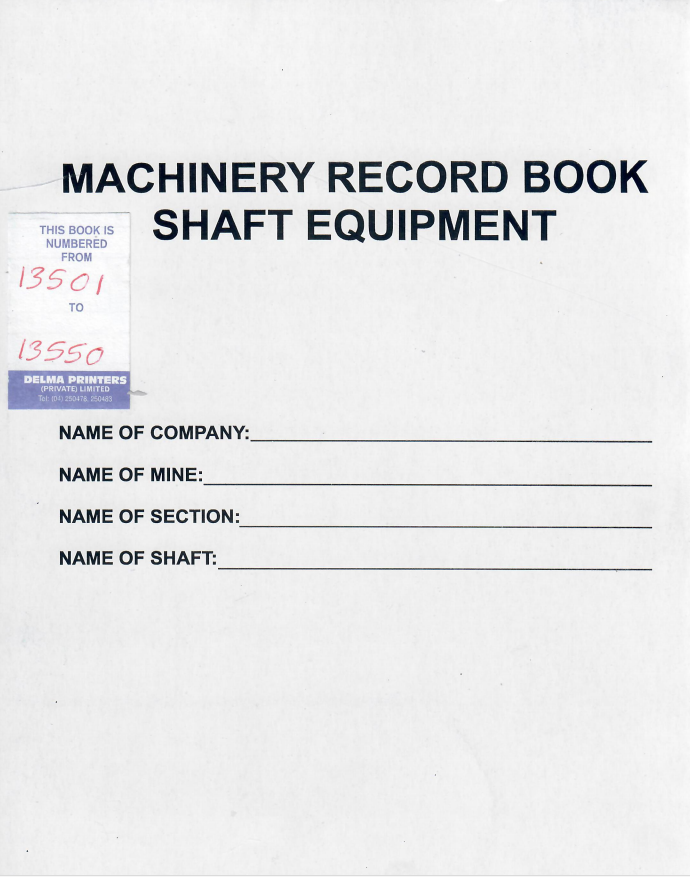 Driver's log book and winding plant daily machinery record book